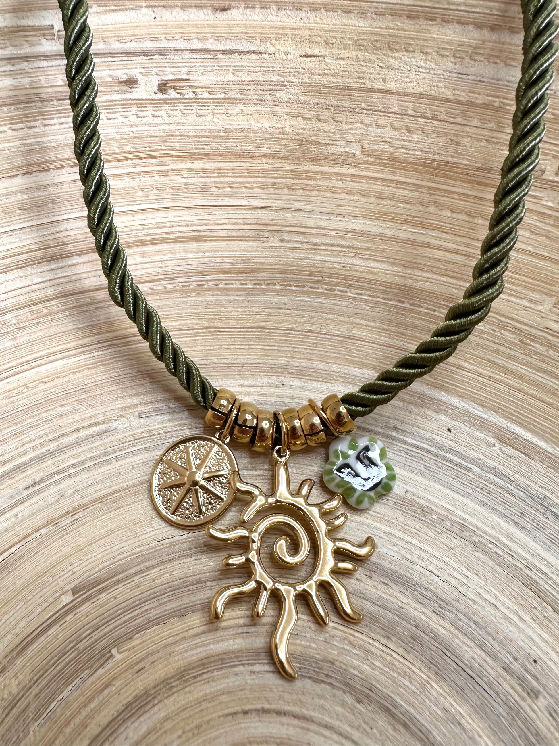 - Collier en corde polyester torsadée avec breloque